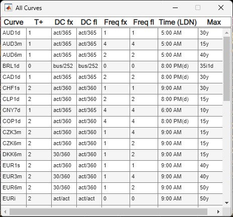 comparison with pre-defined trades on a single curve or the same trade on all available curves.